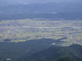| 山頂からの安曇野の平野 | 山頂から燕岳の稜線 | 三角点峰 |