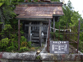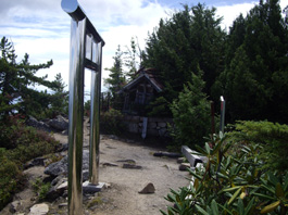 | 8合目から尾根道の登り | 山頂の鳥居 | 有明山山頂の奥社 |