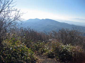 | 笹と灌木帯の中を登り | 浅間隠山山頂 |