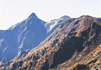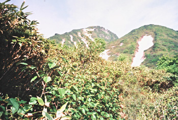 | 笹の中を雲峰山へ後ろは芦別岳 | 芦別岳と北尾根 | 芦別岳山頂 |