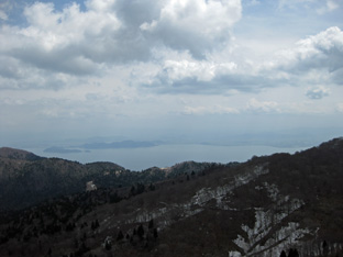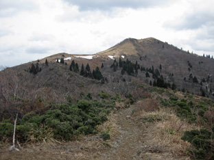 御殿山から武奈ガ岳が急に近くに感じる。ワサビ峠へと下り、 まだ雪が残っているか、ぬかるんだ道かを覚悟してきたが快適な登山道が続く。