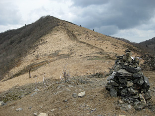 眺め抜群の西南稜から山頂を眺めながらの緩やかな登りで、下山してきた2組の登山者とも話しが弾む。