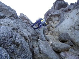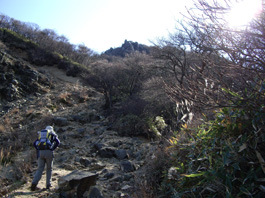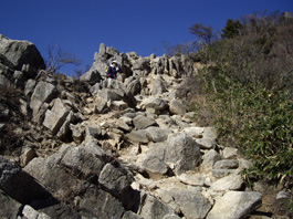 今日は素晴らしい天気でポカポカ暖かく山歩きには最高の日だ。下山する一人の登山者と会いそんな会話で別れ、そして岩場になった。