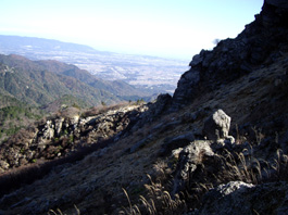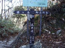 | 砂防ダム堰堤横の分岐点標識 | 岩のピ−ク | 鎌ヶ岳を見ながら稜線歩き |