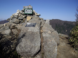 | 鎌ヶ岳山頂への岩場 | 鎌ヶ岳山頂 | 山頂から南方面の稜線 |