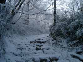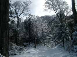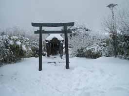 | 銅ノ鳥居 | 雪道の中、石段を進む | 雪が深くなって |