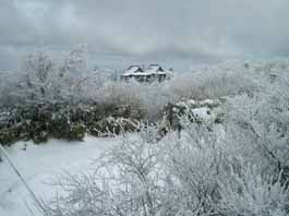 上宮の裏側に山頂標識があったが雪がかなり積もっているので、そのまま休まず英彦山最高峰で一等三角点のあるの南岳に向かう。ブナ林を下って上って10分位で南岳山頂に着き、やっぱり北岳にも行こうと言うことになって、今度は北岳に向かう。中岳まで戻り、山頂標識の背後から雪道を下る。素晴らしいブナ林になって樹氷の世界になった。霧氷の森に迷い込んだような夢心地になって北岳に到着。山頂の祠にお参りして又、見事な霧氷のブナ林を抜け往路を下る。 |