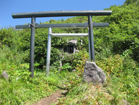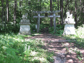 | 西登山道と合流(後方戸隠山) | 飯縄神社の鳥居と祠 |