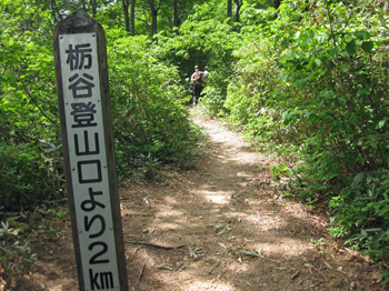鉄製の橋を渡り栃谷沿いから尾根へと広く快適な登山道を進む。