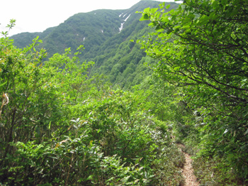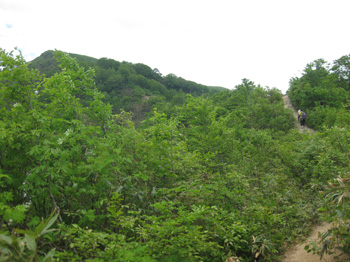 4キロ地点を過ぎると森林限界になり正面の前金剛堂山をみながら楽しい登りになった。