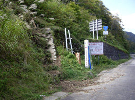 | 大野市から国道157号で温見峠に向かう。悪路の上狭いカーブの連続で、これが国道であるとは驚きだ。温見峠に着くと、岐阜県側からの温見峠への道は不通との看板があり、道路脇に6台の車が止まっていた。丁度、一組のご夫婦が道路脇の登山道に入り、階段を上っているところだった。すぐ靴を履き11:03分登山口を出発する。温見峠は標高約1000b地点なので、能郷白山山頂へは一番近いコースになる。 |