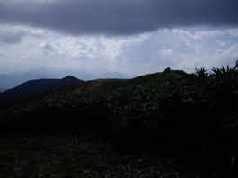 | 山頂が見えてきた(左奥) | 能郷白山山頂 | 山頂から白山神社奥の院(右)を見る |