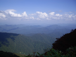 | 山頂から少し下がった地点からの景色 | 山頂から少し下がった地点からの景色 | 山頂近くで歩いてきた道を振り返って |