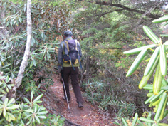 | 白岩登山口 | 御座山を見ながら | シャクナゲのトンネルが続く |