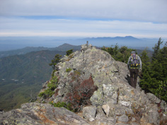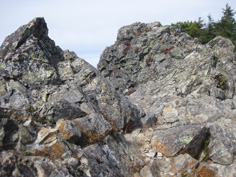 | いきななり岩群が出現 | 岩峰の御座山山頂 | 山頂からの景色 |