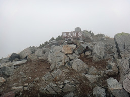 ガスがかかって何も見えなくなった。ただひたすら登って行くと稜線上に出て、13時奥大日岳山頂に着いた。
