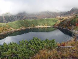 紅葉シーズンなので大勢の観光客に混じって、ミクリガ池から雷鳥荘を通り雷鳥平までくると人は少なくなった。