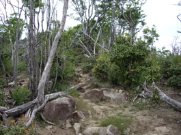 | 山頂間近の尾根道 | 尾根道からの展望 | 尾鈴山山頂 |