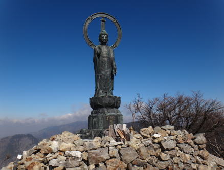 山頂に着いた。いきなり大きく優美な観音様が目に入ったが狭い山頂に7〜8人の登山者がいるので写真がなかなか撮れない。