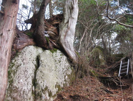 今日は八丈島に台風が上陸しているためか強風のうえ寒く上下にカッパを着込んで登山口の標識から階段を登る。