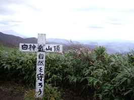 | コースタイム: | 登山口7:54 | → | 白神岳山頂(10:55〜11:15) | → | 登山口13:39 |