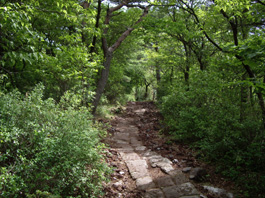 | 登山口 (後方に高千穂峰) | 石畳の登山道 | 道脇に咲くミヤマキリシマ |