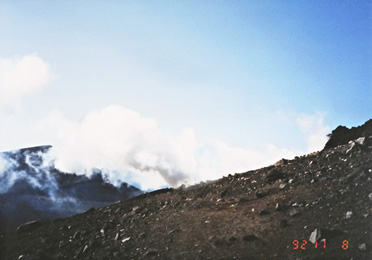 | 砂礫斜面を進む | 外輪山の一角 | ドームの火口原 |