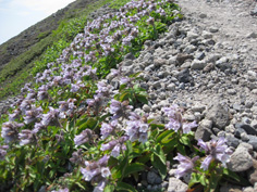 | 森林限界から階段状になり | タルマエソウが咲く登山道 | 砂礫斜面は緩やかになって |