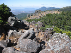 | 東天狗岳から黒百合平に下る | ガレ場の下りから西天狗岳 | 岩場が続く |
