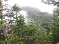 | 八ヶ岳麓三井の森は紅葉真っただ中で、その奥にある唐沢鉱泉は秘湯の良い温泉だった。 その宿に宿泊したので今日は早発のつもりだったが、雨。雨の中を次々と登山者が登ってゆくのが見えたが、 9時頃から雨は上がる予報だった。 予報通り雨はあがり、西尾根コースから黒百合ヒユッテまわりで一周しょうと登山口8:05分出発。 ガスがかかっているので黙々と登り、9:40分第1展望台に着いた。展望がないのでそのまま20分程尾根を進むと今度は第2展望台に出た。 霧が流れ、一瞬、天狗岳山頂が見え、登っている登山者の姿も見えた。 天狗岳の岩場を登っていると、霧はどんどん流れ、20分程の岩場を汗流して登るうちに、展望が開けてきた。 山頂に着くと青空と暖かい日差しになり、大勢の登山者で賑わっていた。 |