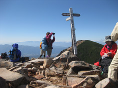 | 西天狗岳山頂 | 山頂から東天狗岳を見る | 東天狗岳山頂 |