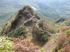 幅50aぐらいの稜線は両側が切れ落ちている。今日は快晴。他に登山者もいないのでゆっくりと渡ることにした。