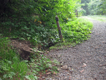 荒れた車道を10分余り歩くと登山口の甘露水に着いた。甘露水は登山口のすぐ先に流れていた。