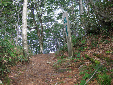 登山口から薄暗い杉林を抜け、ブナやナラの林になった。