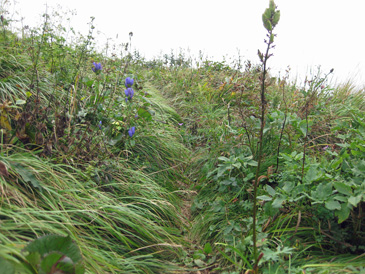 小鷲倉まではリンドウ等を見ながら草原の緩やかな登りだったが、小鷲倉からは深い笹が道を覆っていた。