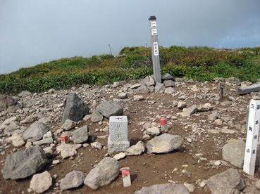 神社方面はロープが張られていたが、ここから山頂へは岩稜帯になり、頂上直下の急坂を登って焼石岳山頂に9:48分到着。