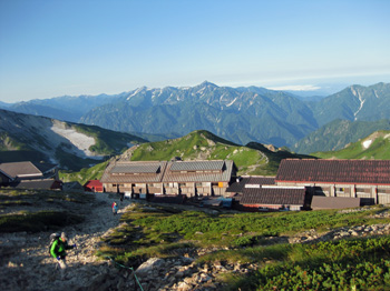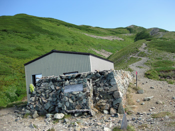 | 乗鞍岳山頂 | 白馬大池の向こうに白馬大池山荘 |
