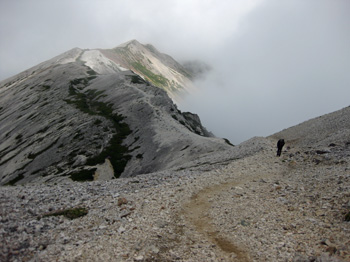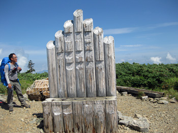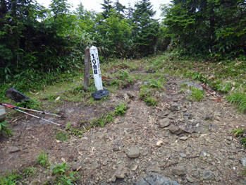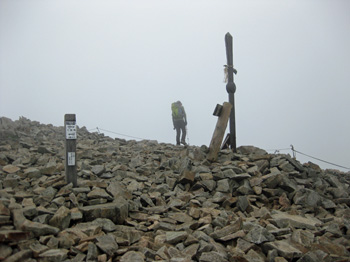 | 雨と濃霧の朝日小屋を出発 | イブリ山山頂 |