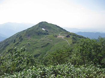 | 朝日岳山頂から小屋へ向かう | 朝日小屋を見ながら |