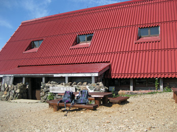 白馬山荘から休みながら7時間半ぐらいで着いたが、小屋前のベンチが気持ち良く、宿泊手続きしてから2時間位ひなたぼっこをしていた。