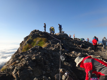次々と登山者が到着し、40人ぐらいになって夕食はみんなで乾杯。噂に違わず美味しい食事でここが2千bの山の上とは思えないほどだった。