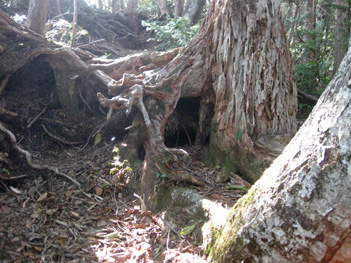 気を緩めぬ荒れた急登だが30分余りで尾根上に出た。笹をかき分けたりする尾根道は展望もなく道も良くない。 荒海山が一時見えたが、アップダウンの多い樹林帯をひたすら歩く。