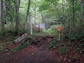 これからでかければ9時までには下山来そうと登ることにした。二股温泉宿から15分程林道を走って御鍋神社前を通過すると登山口前に駐車スペースがあった。車を止め、6:05分出発する。