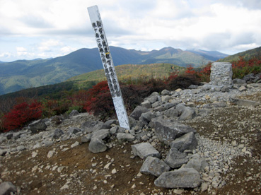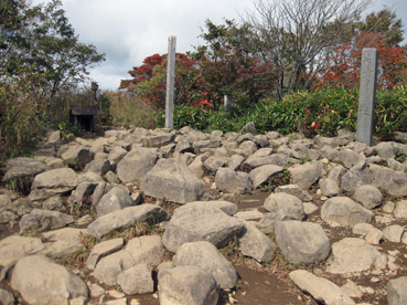 山頂の10人ぐらいの登山者にびっくりした。石がゴロゴロで展望がなく、