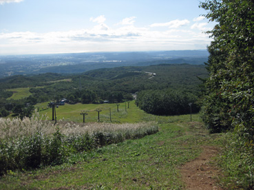 25分程のゲレンデの登りで大汗をかいたが、振り返るとのびやかな景色が広がっていた。