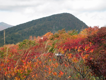 目の前のやさしい姿の泉ガ岳を眺めながら、干上がって湿原の装いもない岡沼を通過する時、