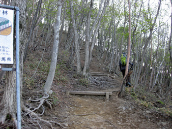 | 国道122号で足尾から桐生へ向かう。青木湖手前の袈裟丸山登山口の看板で 林道小中西山線に入り、