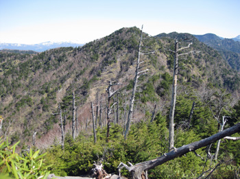 前袈裟から30分程で後袈裟丸山に9:02分到着。前袈裟より25b高いがこの先の奥袈裟が一番高い(1921b)。