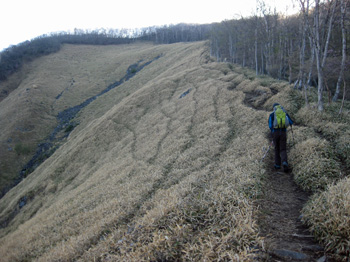 | 前袈裟丸から後袈裟丸山に向かう。 | 途中、登山道は崩れて |