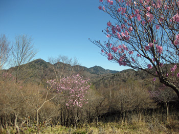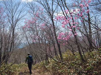 | 前袈裟丸山から少し下っての景色 | アカヤシオの中を下る |